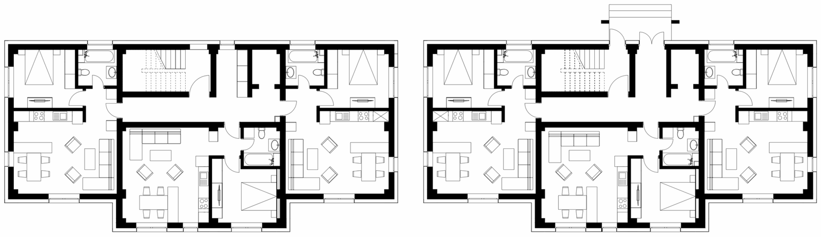 Proiectul de locuință colectivă pentru tineri profesioniști din domeniile medicale și educaționale a fost realizat la standarde nZEB, integrând un design minimalist modern care îmbină funcționalitatea cu estetica contemporană.